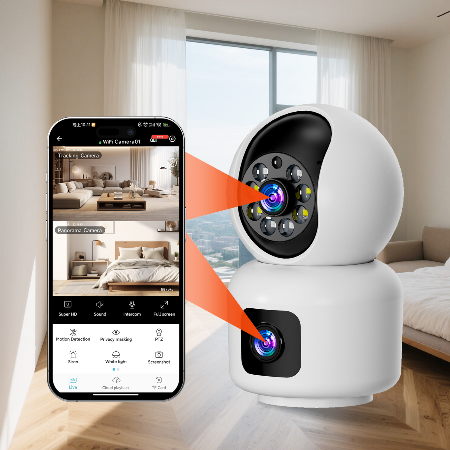 With dual lenses and WiFi connectivity, this camera provides seamless, high-quality monitoring, ensuring your home is protected from every angle.