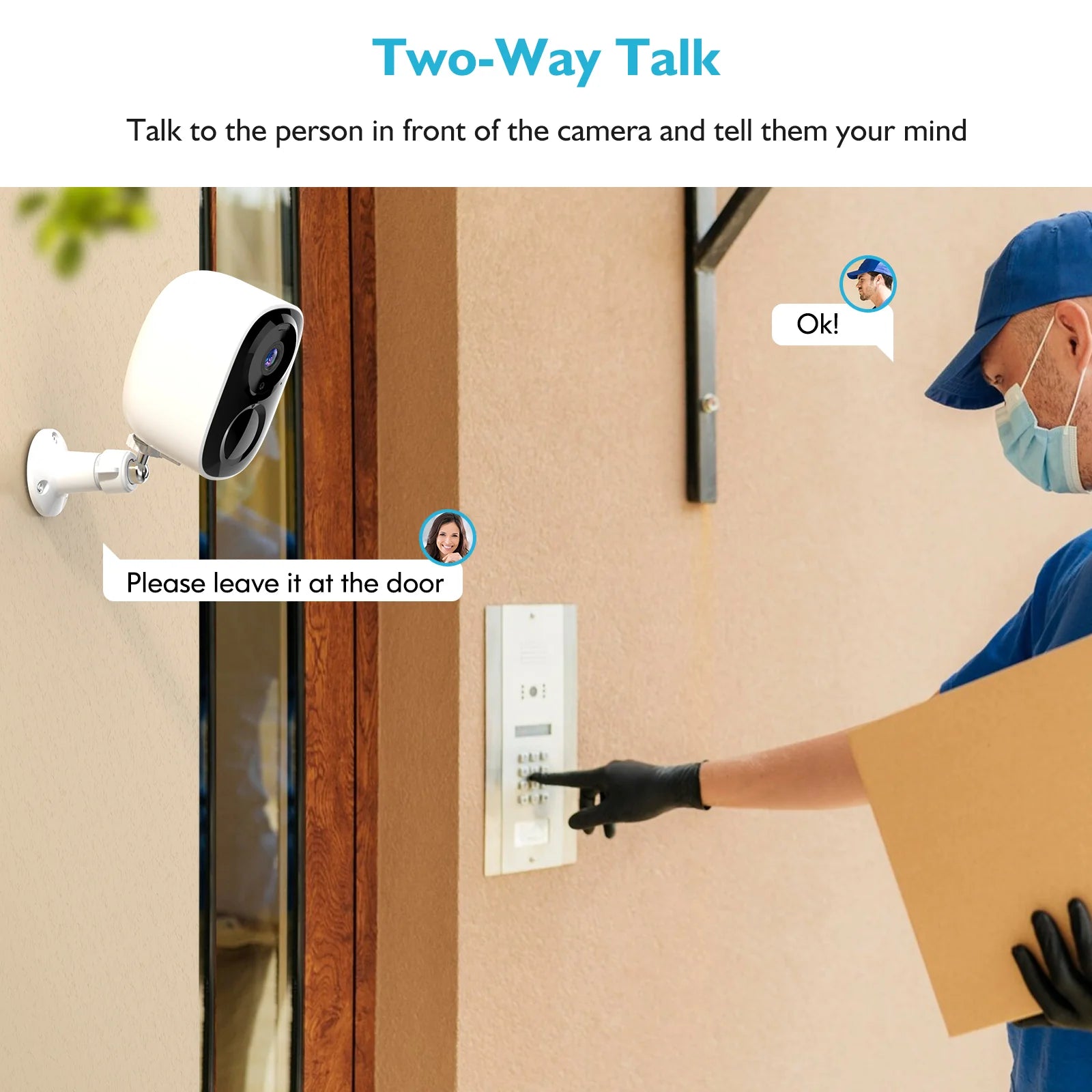 · Two Way Audio: Receive audio alerts from the camera, allowing you to monitor your surroundings without needing to move.